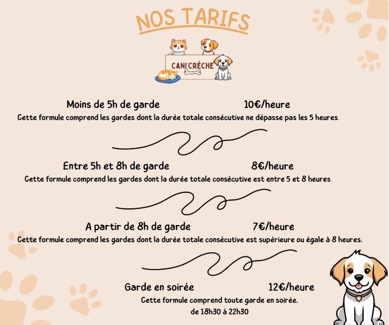 Ces tarifs concernent une garde ponctuelle en journée (8h30-18h30).